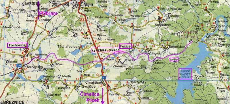 ze stanice Tochovice k vodnímu dílu Orlík o celkové délce trati 16,008 km.